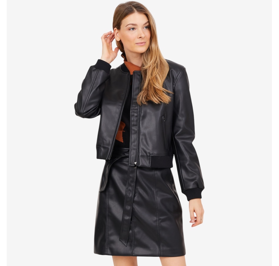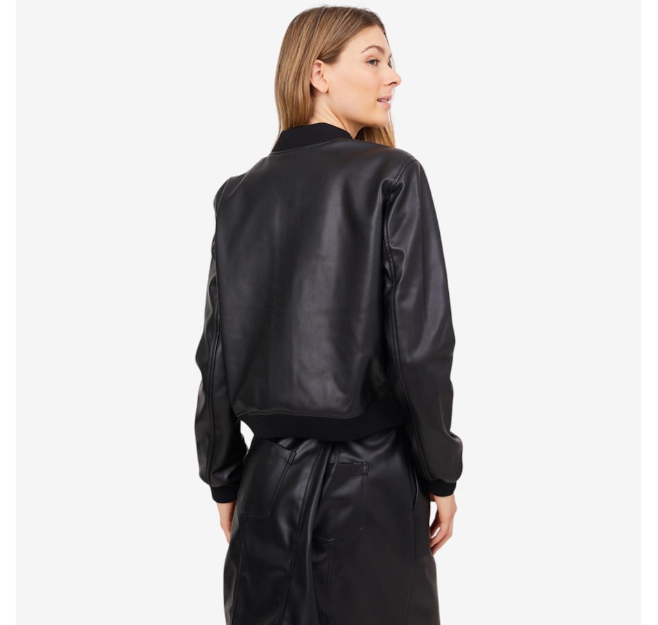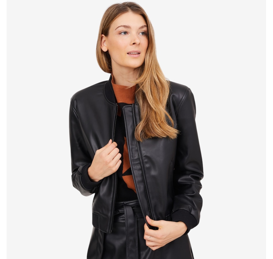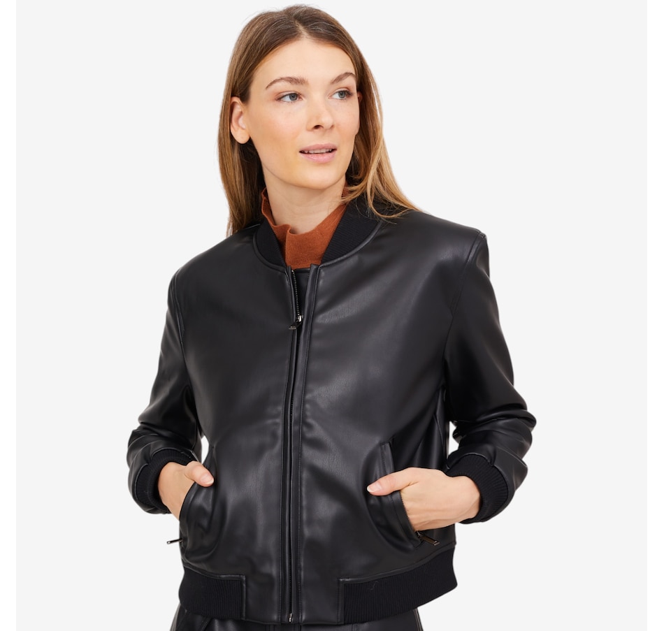 Infuse your ensemble with a subtle edge by zipping up this classic bomber jacket, expertly crafted from sleek polyurethane. The fitted cuffs and hem offer a refined silhouette while helping to retain warmth. Discreet side pockets add both practicality and style, making this jacket the ultimate blend of function and fashion.