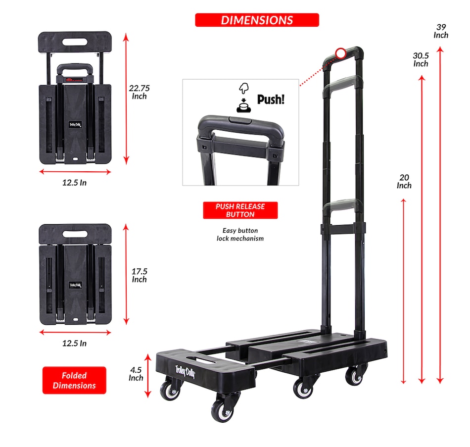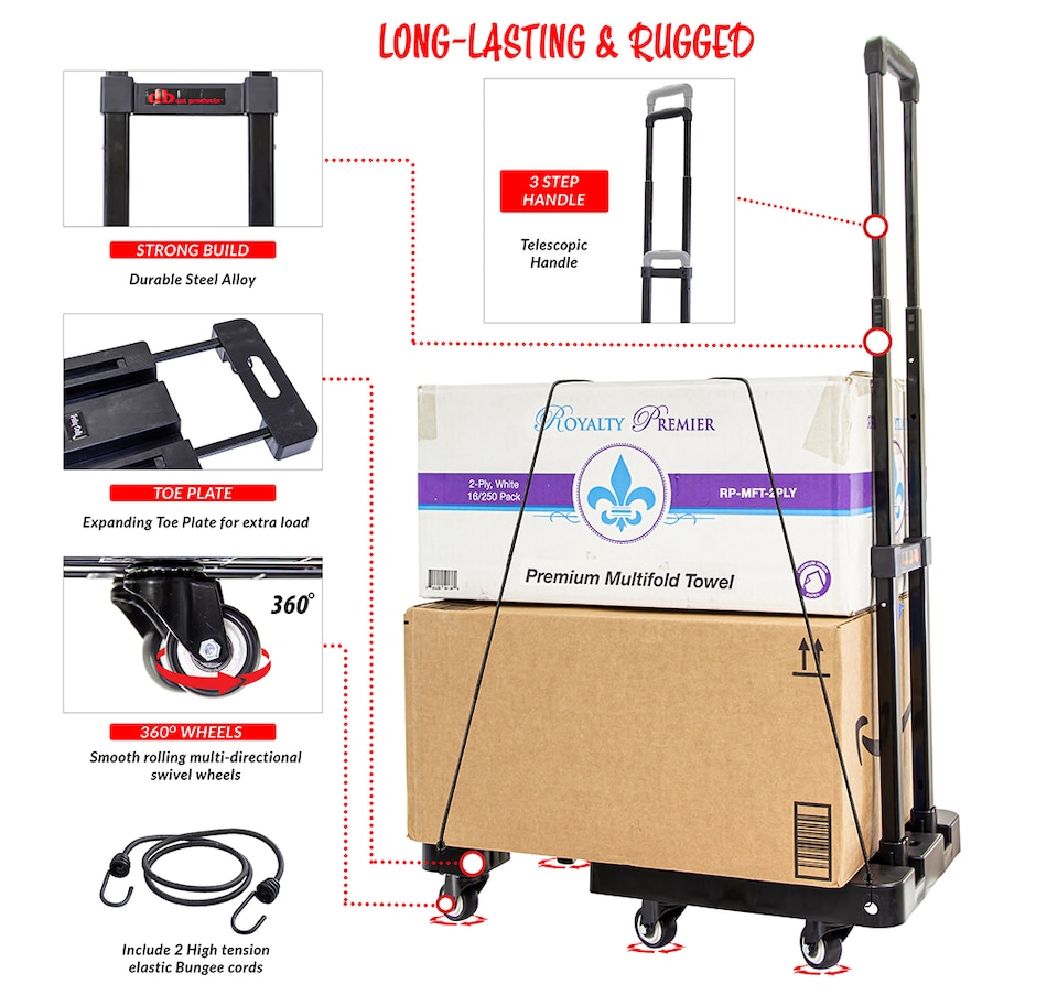 This lightweight and portable dolly features a three-step telescoping handle for easy manoeuvrability, and an expandable toe plate for added space to place bulky objects. It's also built to last, comes with two high-tension bungee cords to help secure your items, and also folds in half for compact storage.