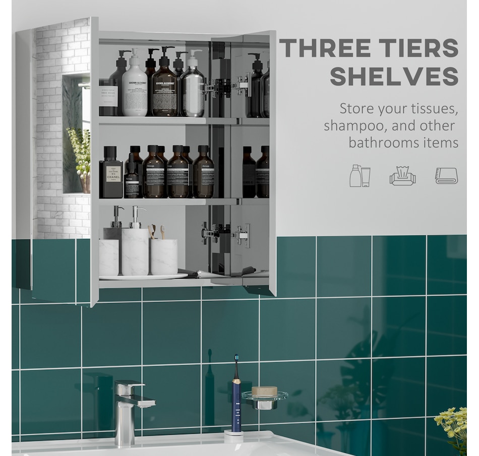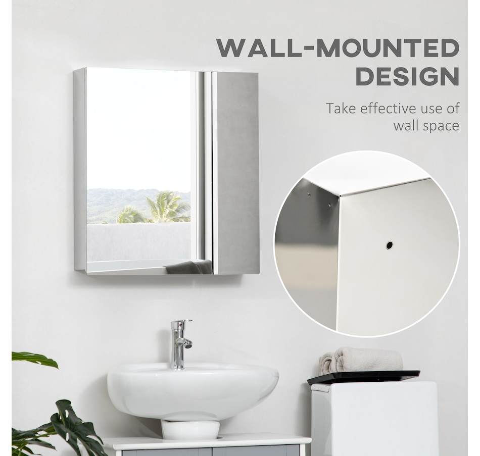 Store and organize your bathroom essentials in this cabinet with storage and a mirror from kleankin. Three shelves inside will allow you to store your facial creams, makeup, or other daily hygiene items. It is equipped with front mirrors to keep everything protected. Also, you can get ready in the bathroom whenever you want. Wall-mounted design saves floor space. Enjoy this functional mirror cabinet in your bathroom!Features: