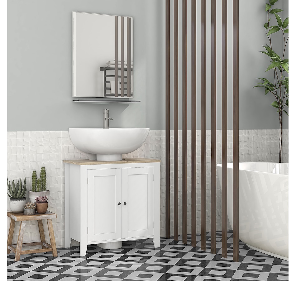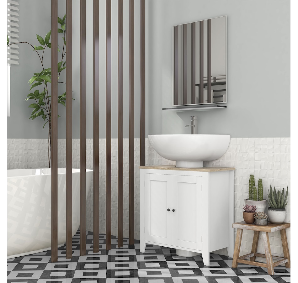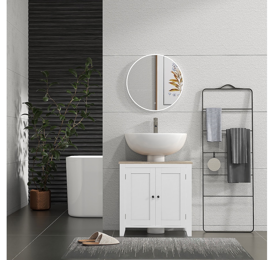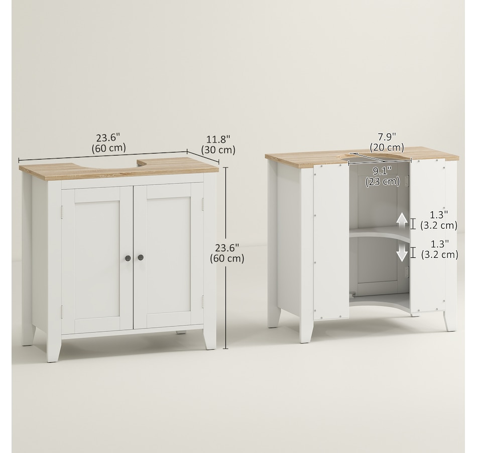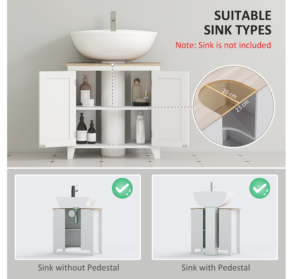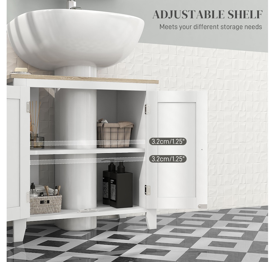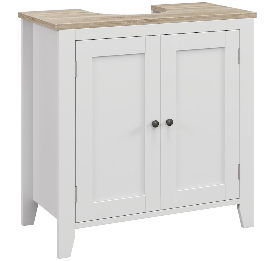 Maximizing space in your bathroom has never been easier, thanks to this bathroom sink cabinet from kleankin. A modern design and white colour give it an easy and versatile feel which blends into the room with ease. This sink storage cabinet is made from an MDF for supreme strength, with the 'U' cut out allowing it to slot in snuggly around the sink and pipes. Adjustable shelves inside the under sink unit could cater to your different storage needs.