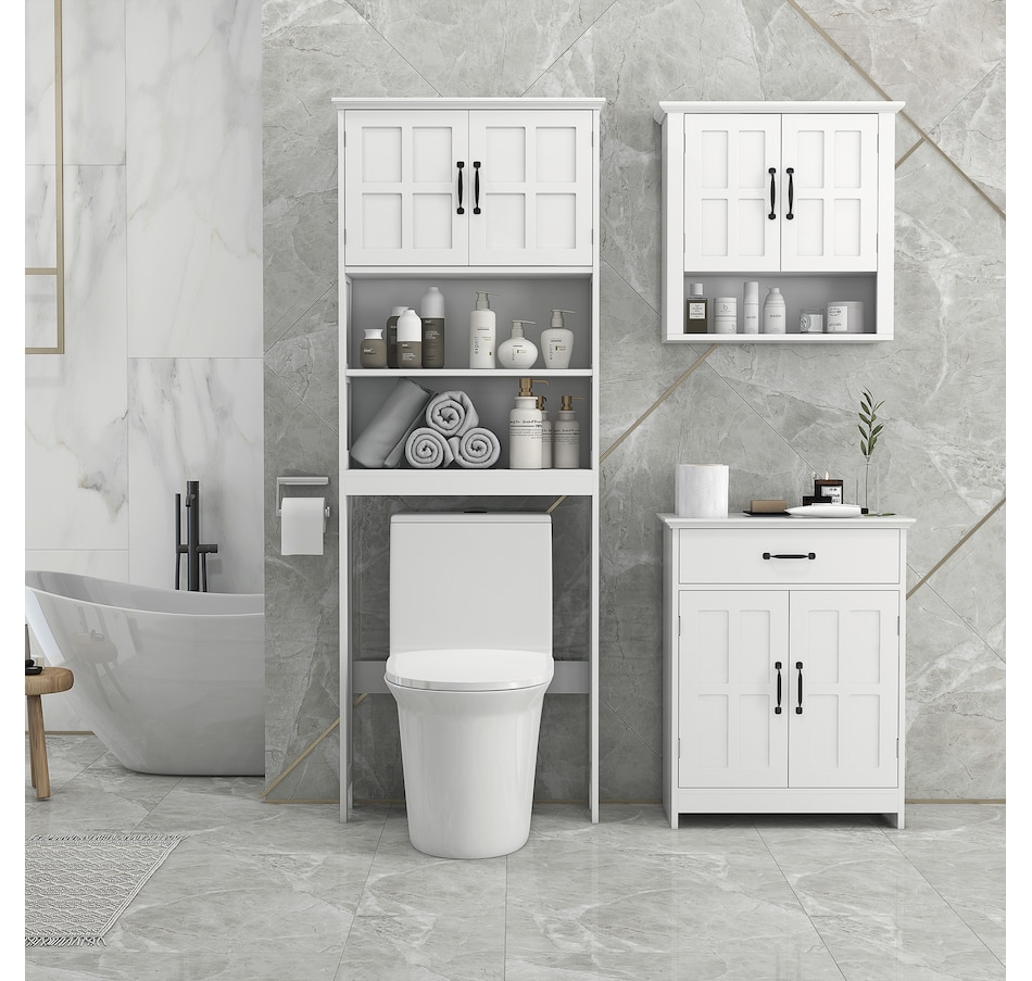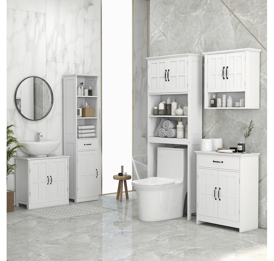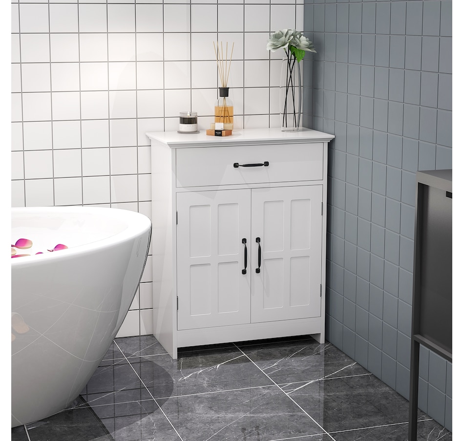 Modern Bathroom Cabinet, Bathroom Floor Cabinet with Doors, White