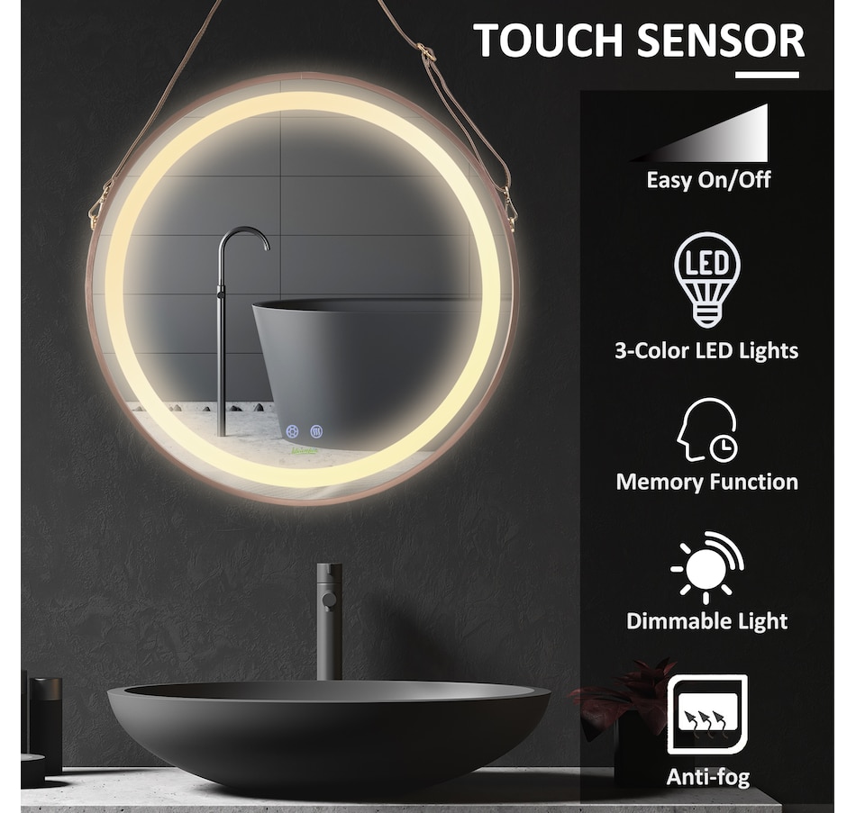 Not only does this modern bathroom mirror facilitate your morning and evening routines such as skin-care, make-up and shaving, it also adds a trendy highlight to any space that stands out when guests arrive. Additionally, it is capable in switching light intensity, color temperature, and has memory as well as anti-fog function through simple touch, making your life easier. Let this kleankin bathroom mirror with lights to accompany you, and create your own relaxing but chic atmosphere.Features:
