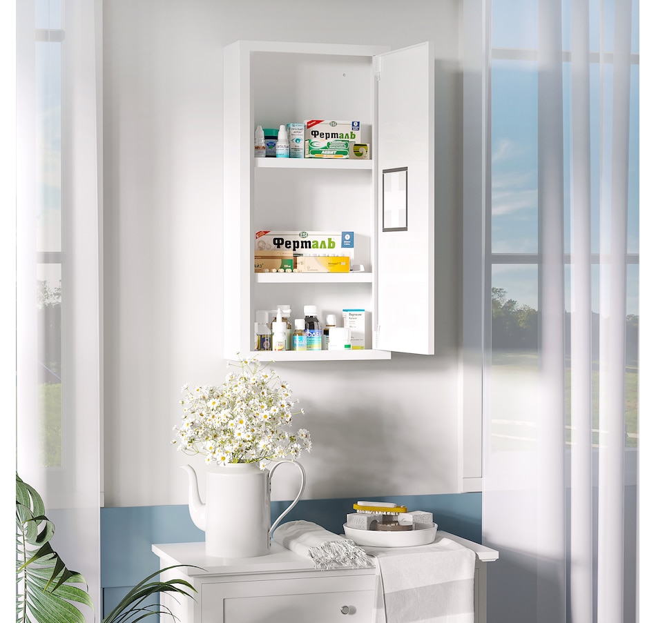 For families with children and pets, it's important to keep medical prescriptions and medications easily accessible, which is why this wall-mounted medical cabinet is a must-have item for any home. This medical storage cabinet has three-tier storage space that allows you to organize, isolate medications that need to be kept away from each other. The first aid cross is in the front, so it's easy to recognize if there's an emergency.Features: