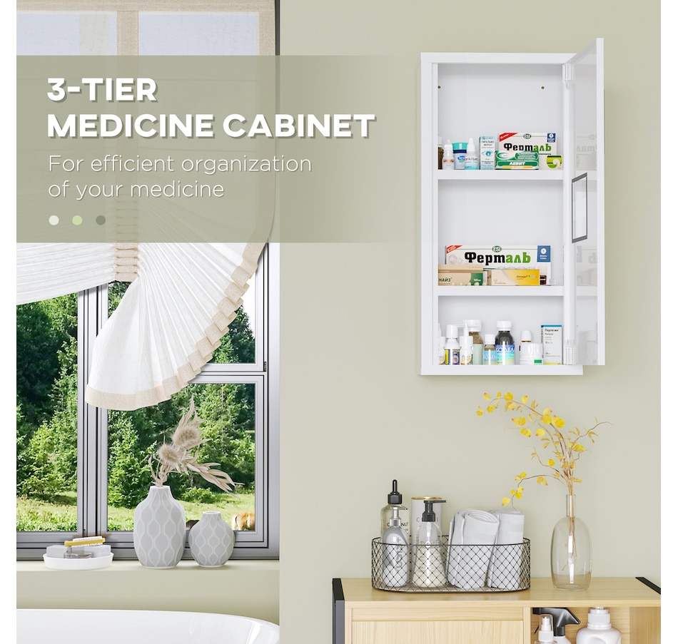 Wall Mount Medicine Cabinet with 3 Tier Shelves for Bathroom