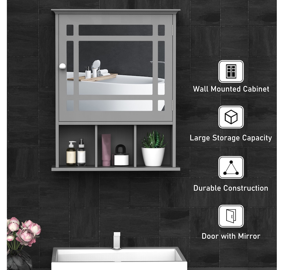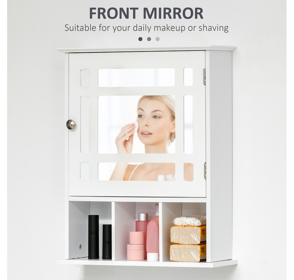 This bathroom mirror with storage from kleankin is an attractive artwork that is specially designed for all your cosmetics or articles of everyday use keeping well organized. There is 1 shelf in the medicine cabinet and 3 open storage shelves at the bottom. You can store your toothbrush, soap, toiletries, and other things according to their sizes. The wall-mounted feature makes it space-saving, perfect for smaller rooms, such as the bathroom or powder room.Features: