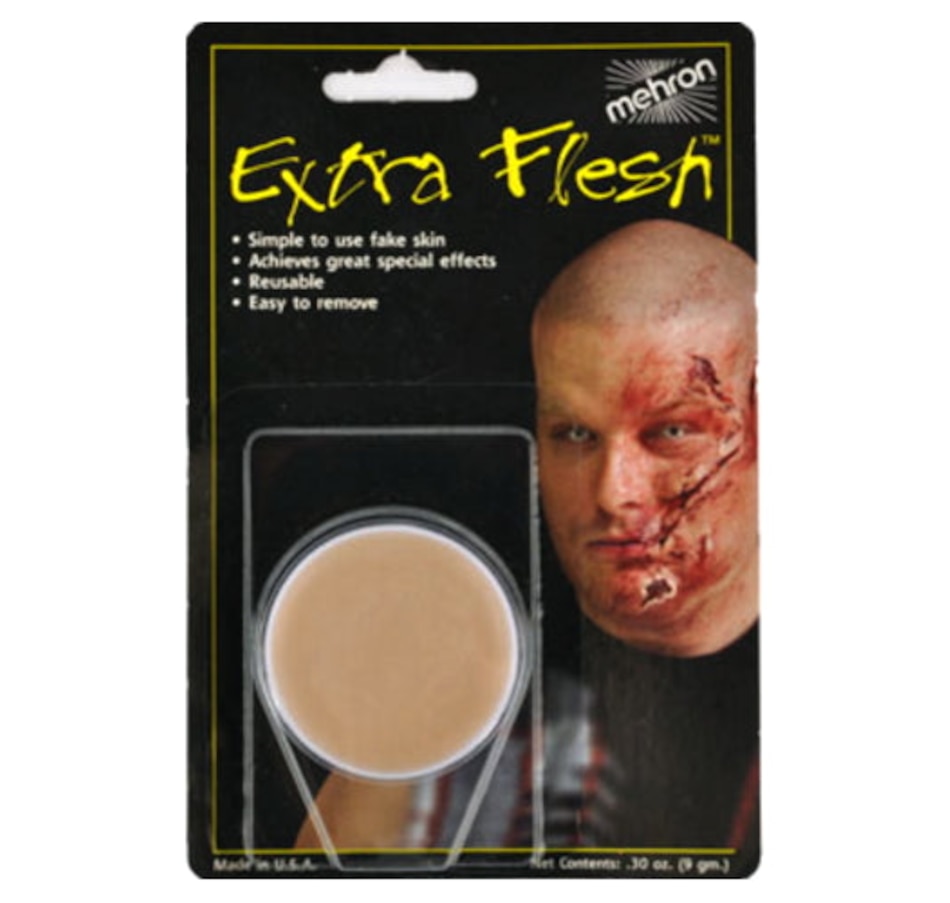 This Extra Flesh Special Effects Makeup is easy to use; just rip off a chunk, dab it on and blend it out. This special Extra Flesh by Mehron can be applied with a safe non-toxic adhesive, Fixative A or Spirit Gum which is used by Special Effect Makeup Artists throughout the entertainment world. Extra Flesh is a synthetic makeup product that can be reused and is easy to apply and remove. Extra Flesh is an exclusive formulation of the Mehron makeup Company.