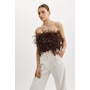 Zaina Strapless Cropped Feather Top