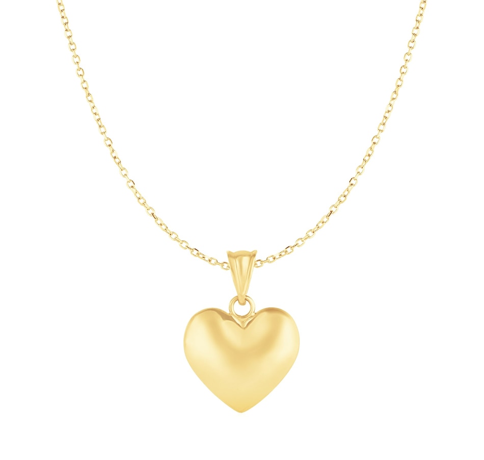 Express your love with this classic gold pendant adorned with a beautiful puffed heart. The pendant is 18 inches long and closes with a lobster clasp.