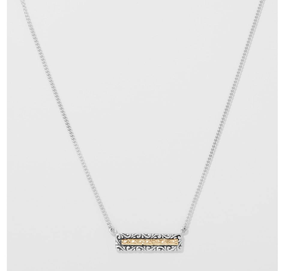 Samuel B Collection Sterling Silver 18K Hammered Gold Bar Necklace With Bali Design