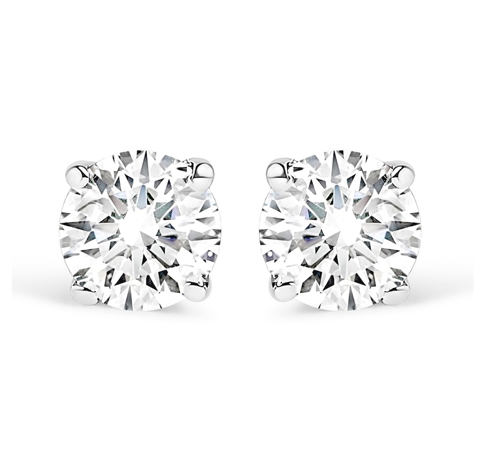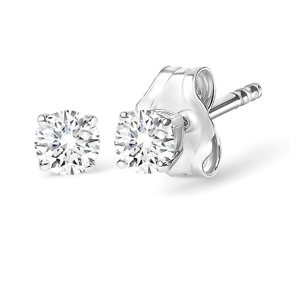Celebrate any occasion with these classic shimmering diamond stud earrings. Crafted from 14k white gold each earring showcases a sparkling round-cut solitaire diamond in a 4-Prong Setting. Dazzling with 1.0 cttw of diamonds and a bright polished shine, these push back stud earrings secure comfortably on your ear. These diamond studs are certified by the AGS as natural, earth mined diamonds. These diamonds are color rated as F-G color, and clarity graded as I1-I2 clarity. Make these classic diamond studs yours today!