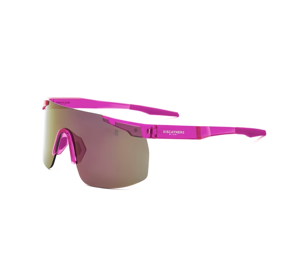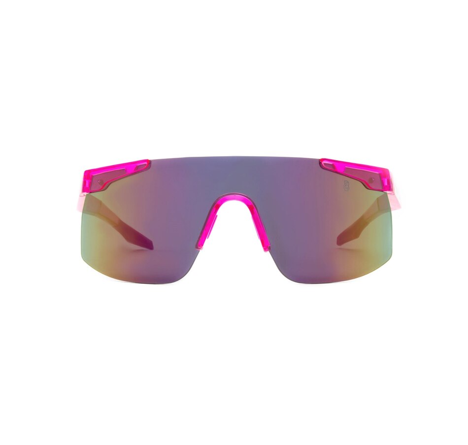 Featured in a clear magenta PC frame with magenta mirrored TAC polarized lenses.