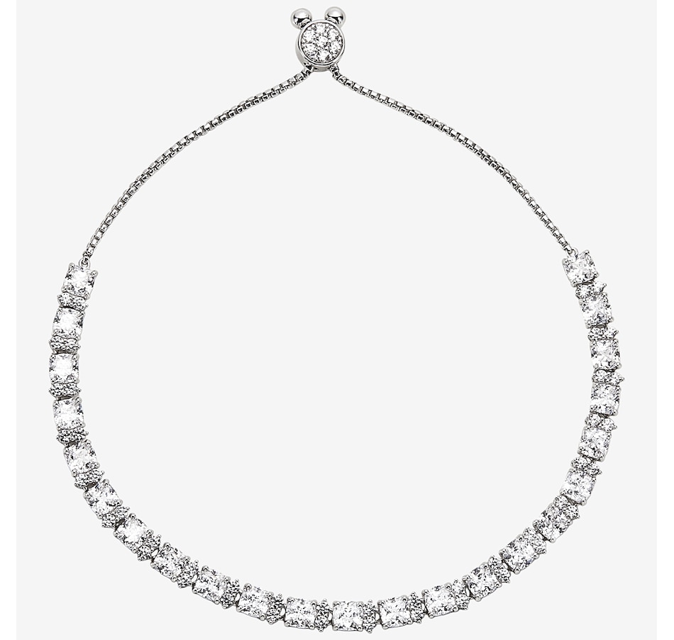 Sterling Silver Rhodium Plate Cushion & Round Diamonelle Bolo Bracelet