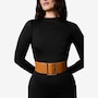 Make a bold statement with the Colbie leather belt from Katherine Karambelas, featuring a wide grain-textured design and gleaming gold-tone buckle hardware. Its elastic back offers effortless comfort and stretch, while the adjustable closure makes for an ideal fit. The Colbie is a modern classic that cinches your style with confidence!
