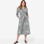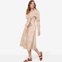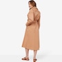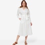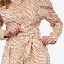 The Laura from Badgley Mischka is a beautiful shirt dress with a circular mid length skirt, available in both great animal or solid prints. It is made with a fantastic, slick fabrication, and a versatile design for multiple types of styling. It features an elastic at the back and deep armholes, so it is cool in the summer and the sleeves can be rolled.