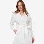 • Semi-fitted, centre front closure with button snaps, collar, long sleeves