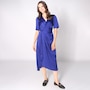 Available in a trio of fabulous colours, you're going to love this hammered satin elbow sleeve surplice v-neck dress from Nina Leonard.