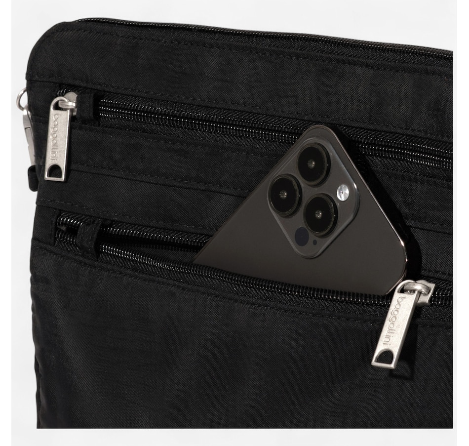 From work days to extended vacations, keep your belongings safe in this bag with a sleek, modern appeal. Designed with various protective features like RFID card slots, cut-resistant materials, and locking zippers, this crossbody will become your go-to bag for adventures both near and far.