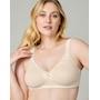 Appreciated by women with fuller busts, this wireless bra delivers all-day comfort, support, and a touch of lace with No Poke Side Stay technology. Tailored for its everyday reliability, it offers breathable support and flexible movement. Now updated with soft lace details and No Poke Side Stay technology, it's built to move with you.