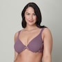 • Full coverage spacer cups with lace overlay provide smooth, supportive shaping