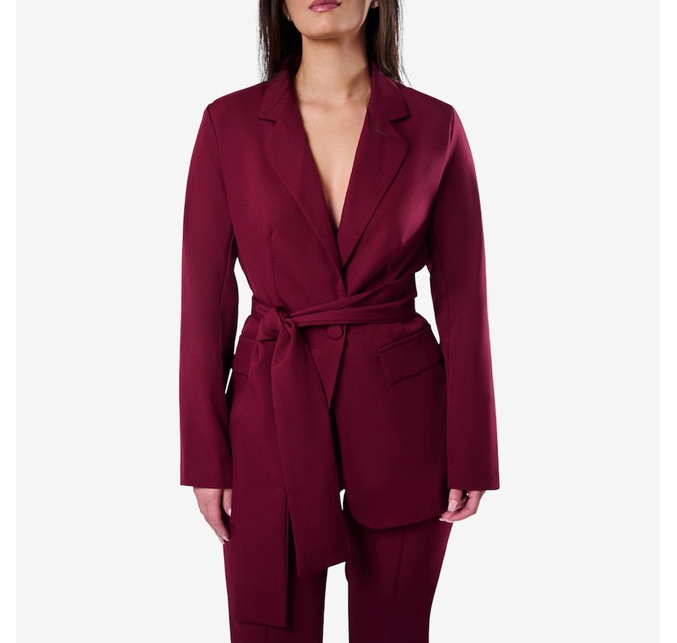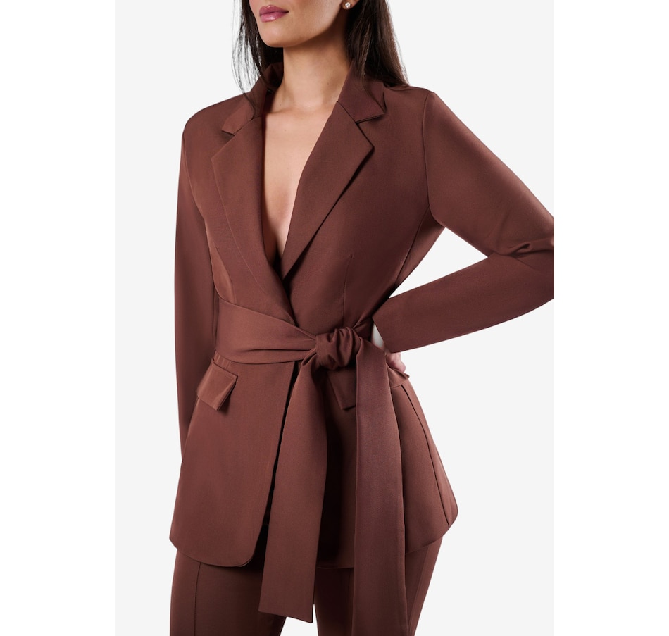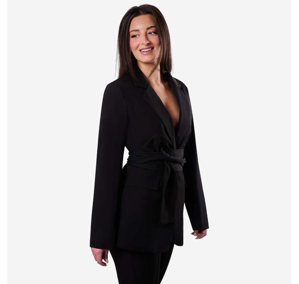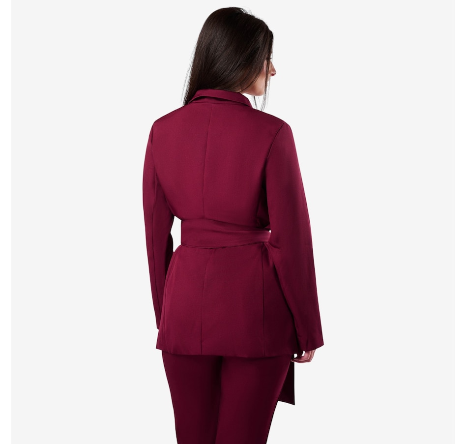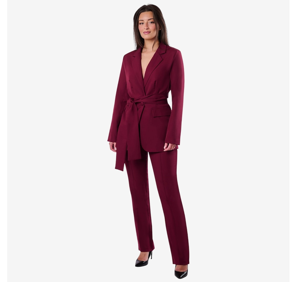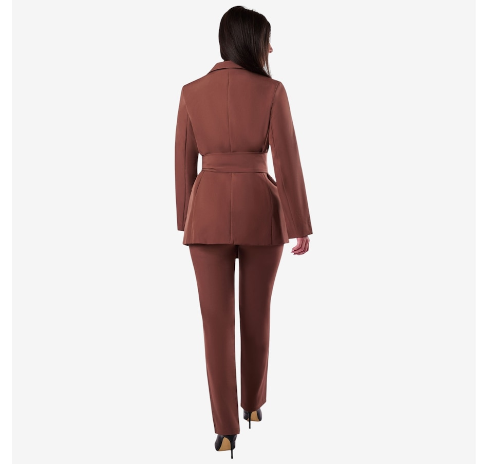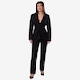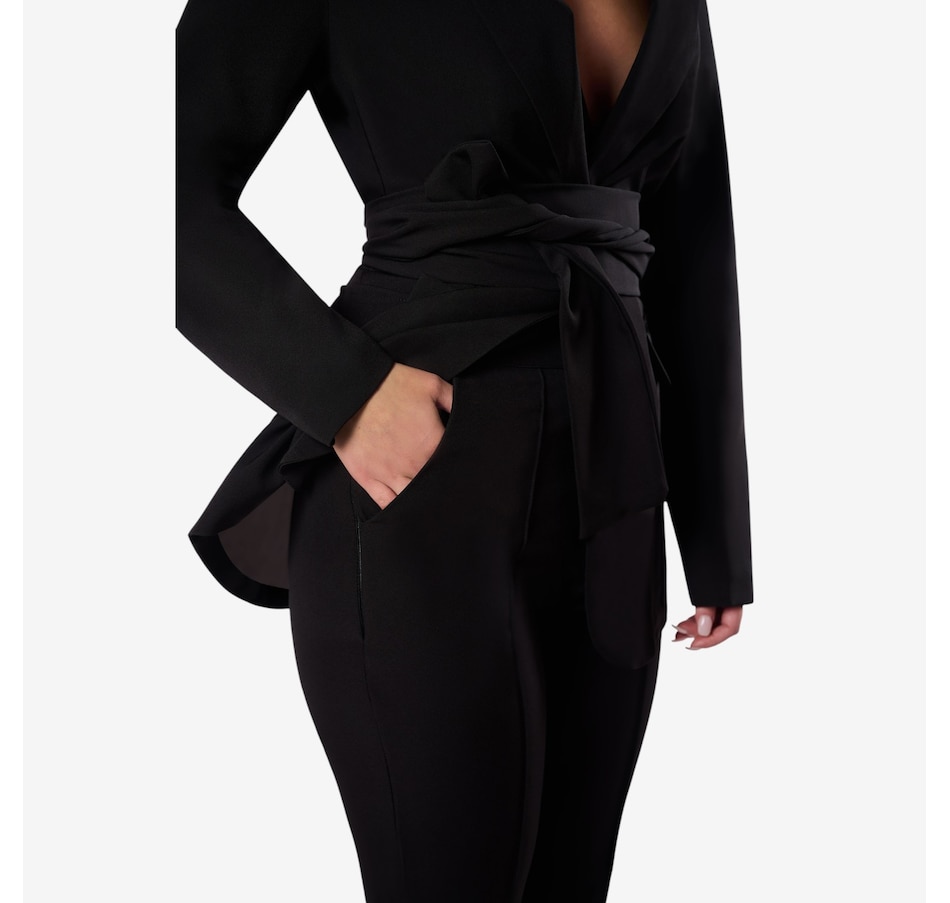 The Holland from Katherine Karambelas is a fabulous two-piece pant suit that is sure to become an immediate favourite. The jacket features a v-neck collared blazer and a sharp wrap-around belt. The loose fit pant is designed with a contour waistband and finishes with a classic zipper closure.