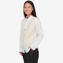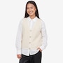 This sleeveless boucle cardigan is a refined and versatile addition to your winter wardrobe. Made from a sustainable blend of fabric, this cardigan offers both a luxurious appearance and a comfortable fit. The stone colour makes it a timeless choice that can be easily paired with a variety of outfits. The boucle pattern adds a rich texture and sophisticated look, while the sleeveless design provides a modern and airy feel. Perfect for layering, it can be worn over a blouse for extra warmth or styled with a