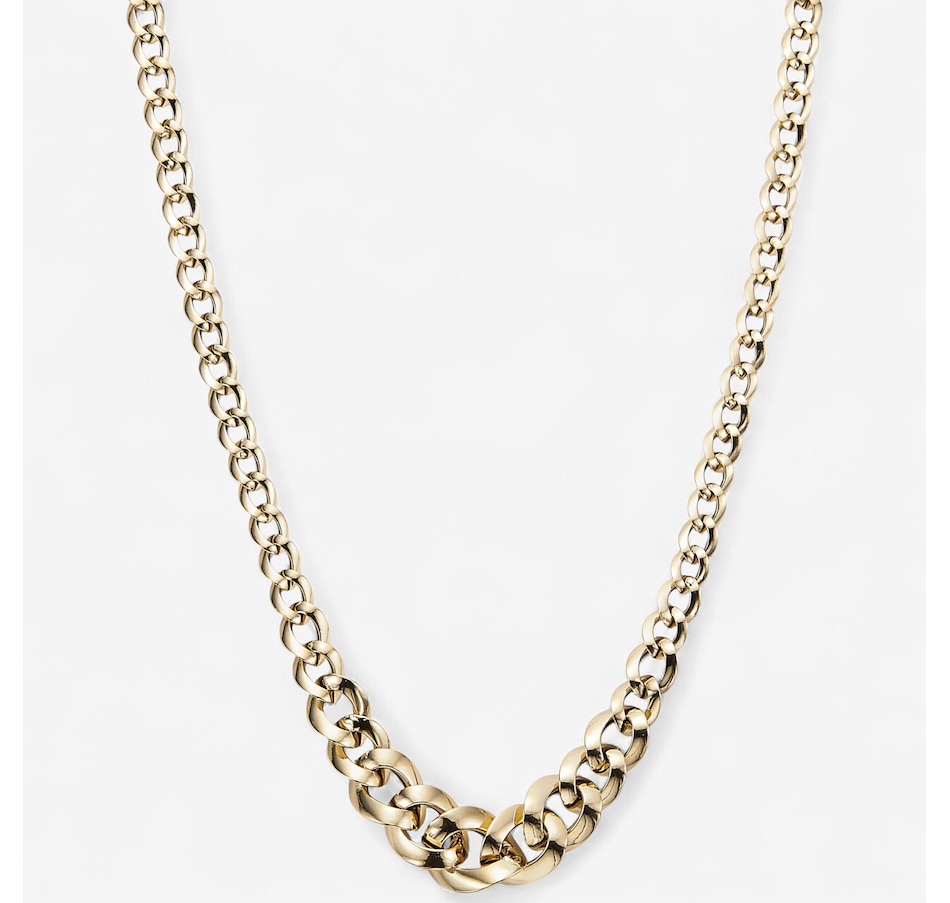UNOAERRE 18K Yellow Gold Graduated Hollow Knife Edge Wire Link Necklace