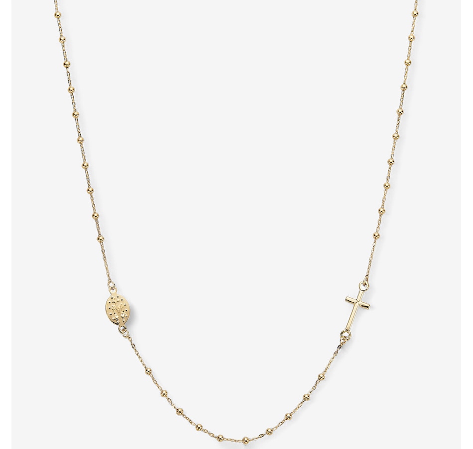 A graceful blend of faith and fashion, this 18K yellow gold rosary station necklace from UNOAERRE features delicate gold beads spaced along a classic chain. Italian-made and elegantly understated, it’s a meaningful piece with timeless appeal.