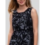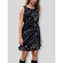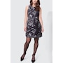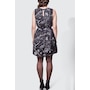 It is a sleeveless dress, has a round neckline with inverted front pleats, full lining and a center back keyhole closure with button and elastic loop. Crafted with a woven non-stretch material, this style is super versatile; by removing the self belt, it can be worn as a loose trapeze A-Line dress, when tied only in back, you now have a semi-fitted style and a fit and flared styles when fully tied at the waist.