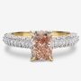 This ring showcases the vibrant beauty of a pink lab-grown diamond paired with the refined brilliance of white lab-grown diamonds. The faceted radiant‑cut centre stone creates a striking focal point, enhanced by sparkling accents set into a polished two‑tone gold design. With its bold presence and smooth finish, the piece brings modern luxury and timeless elegance to any jewellery collection.