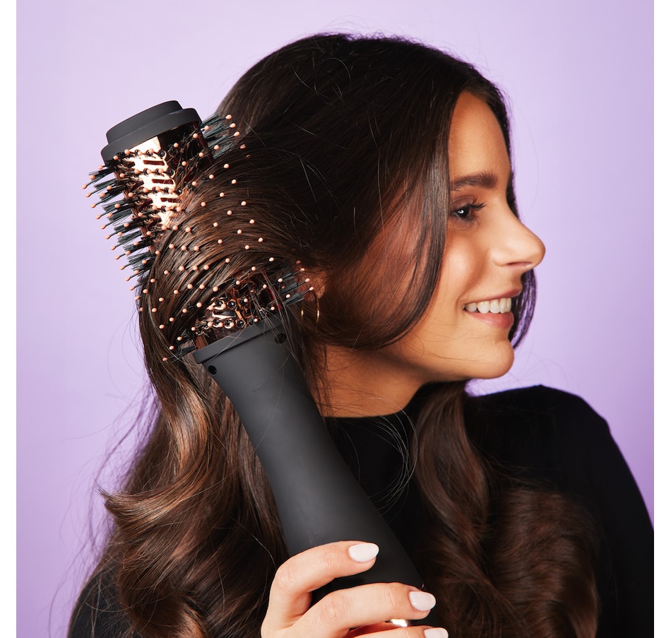 It is an all-in-one styling tool that combines a 360° airflow with a large oval brush design that simultaneously dries, styles, and volumizes hair in one step.