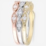 Celebrate brilliance from every angle with this 14K tri‑gold diamond band set, a stunning trio designed to shine individually or as a radiant stack. Crafted in a harmonious blend of white, yellow, and rose gold, each band is adorned with round, faceted diamonds that catch the light with every movement. The three‑band design offers endless styling possibilities: wear them together for a dazzling layered look, mix and match with your existing rings, or highlight each metal tone on its own.