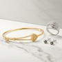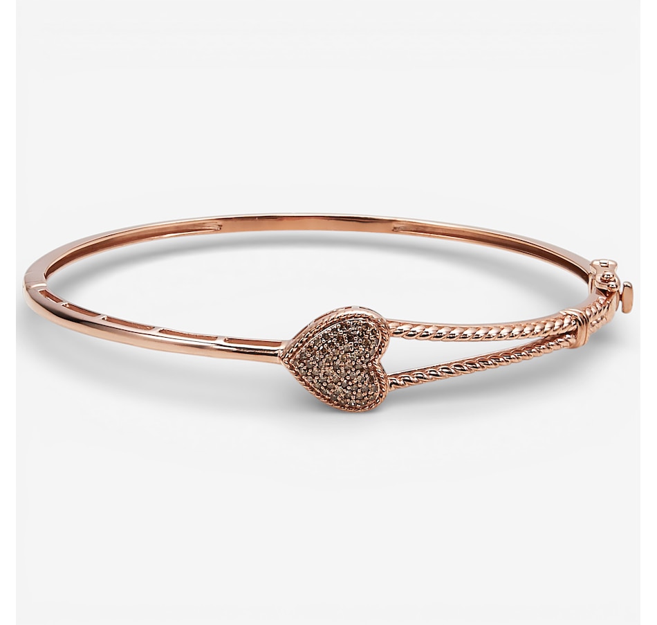 This bangle brings together the shimmer of coloured diamonds with a sleek heart‑accented design, creating a look that is both radiant and refined. The prong‑set, faceted stones add vibrant sparkle throughout, while the hinged closure with a safety clasp provides secure, comfortable wear.