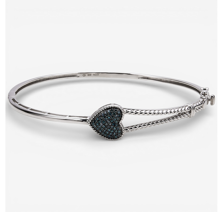 Sterling Silver Diamond Heart Bangle