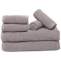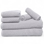 This 100% cotton bath towel set features a geometric tile design offered in a beautiful range of key colours to coordinate with any bathroom decor. They are made from combed cotton fibres, which means they have been combed to remove short, stiff fibres and impurities, resulting in a smoother, stronger, and more durable final product. Combed cotton is used in high quality superior towels because of it's enhanced softness and performance.