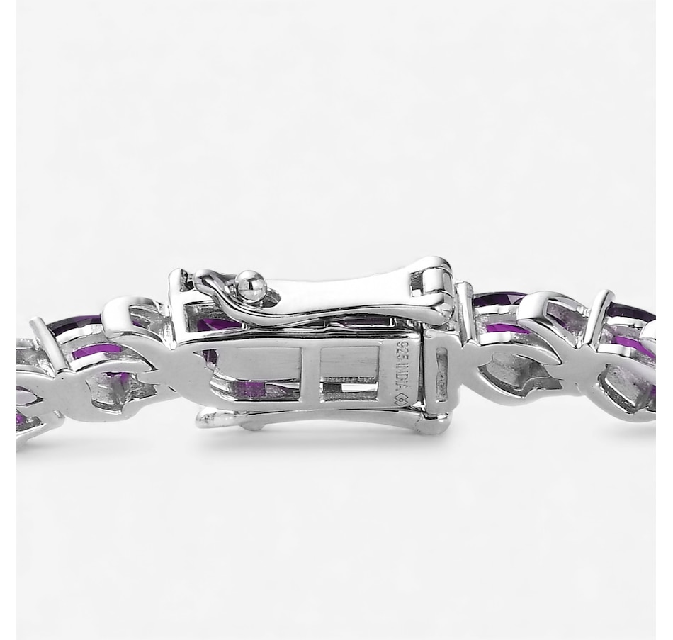 Graceful and colourful, this marquise gemstone bracelet from Gem Reflections is crafted in sterling silver with rhodium accents. Its sleek design and vibrant stones make it a standout accessory for any occasion.