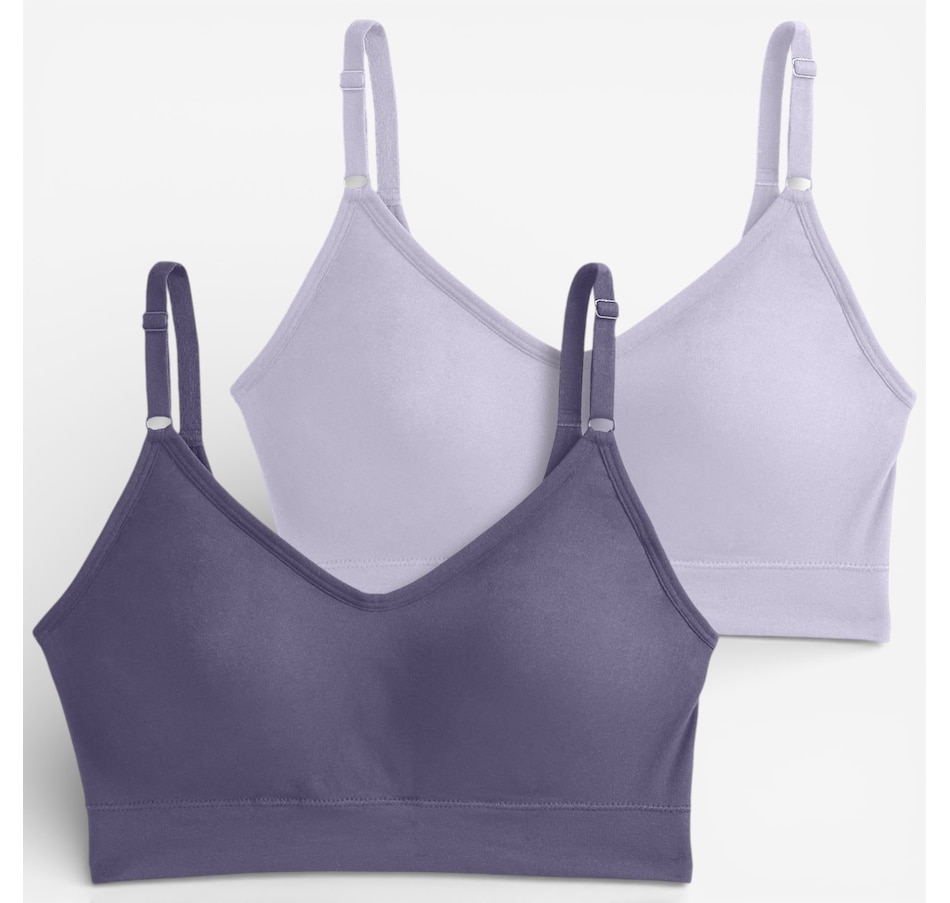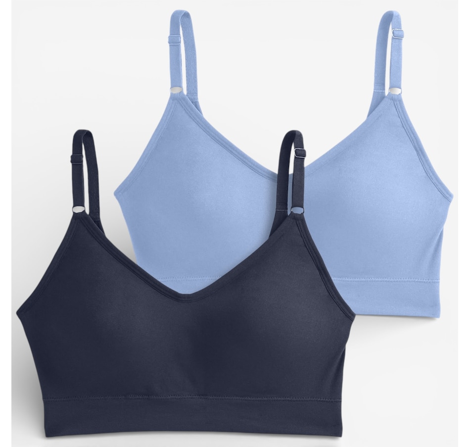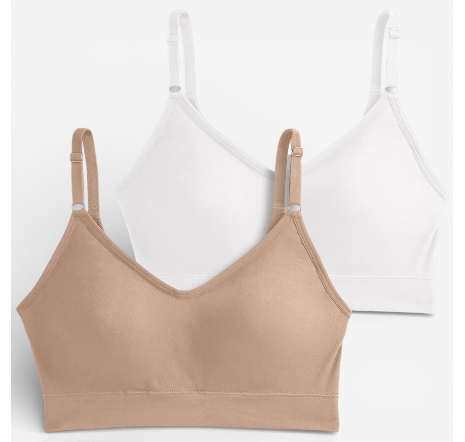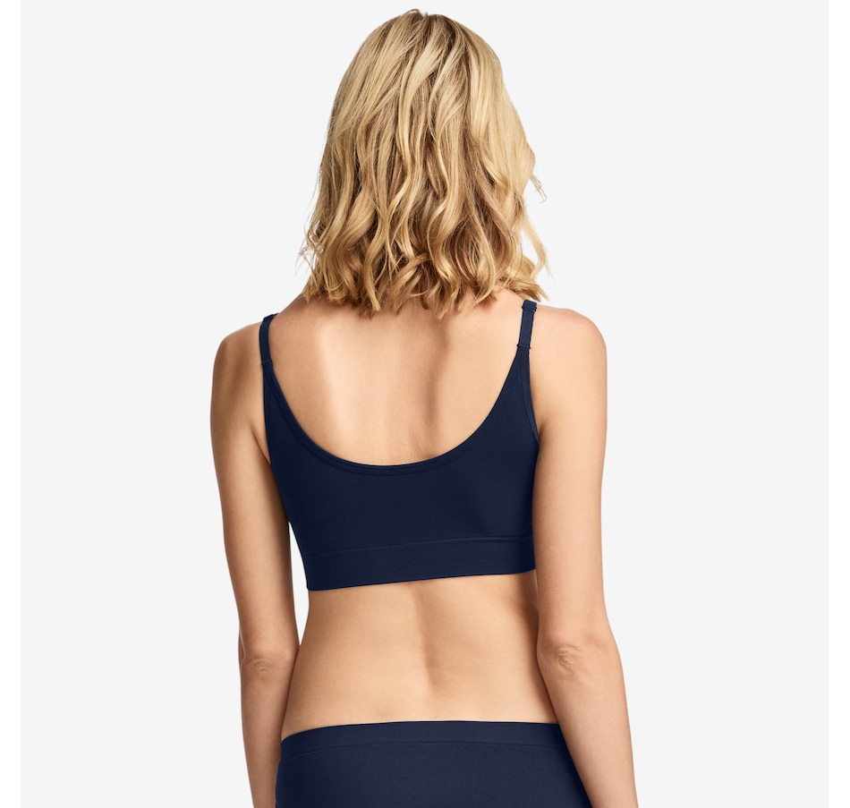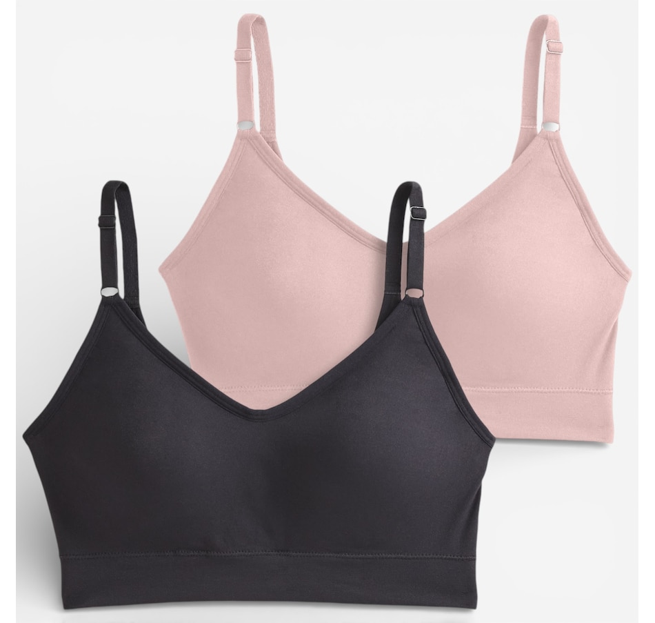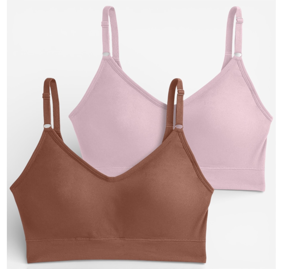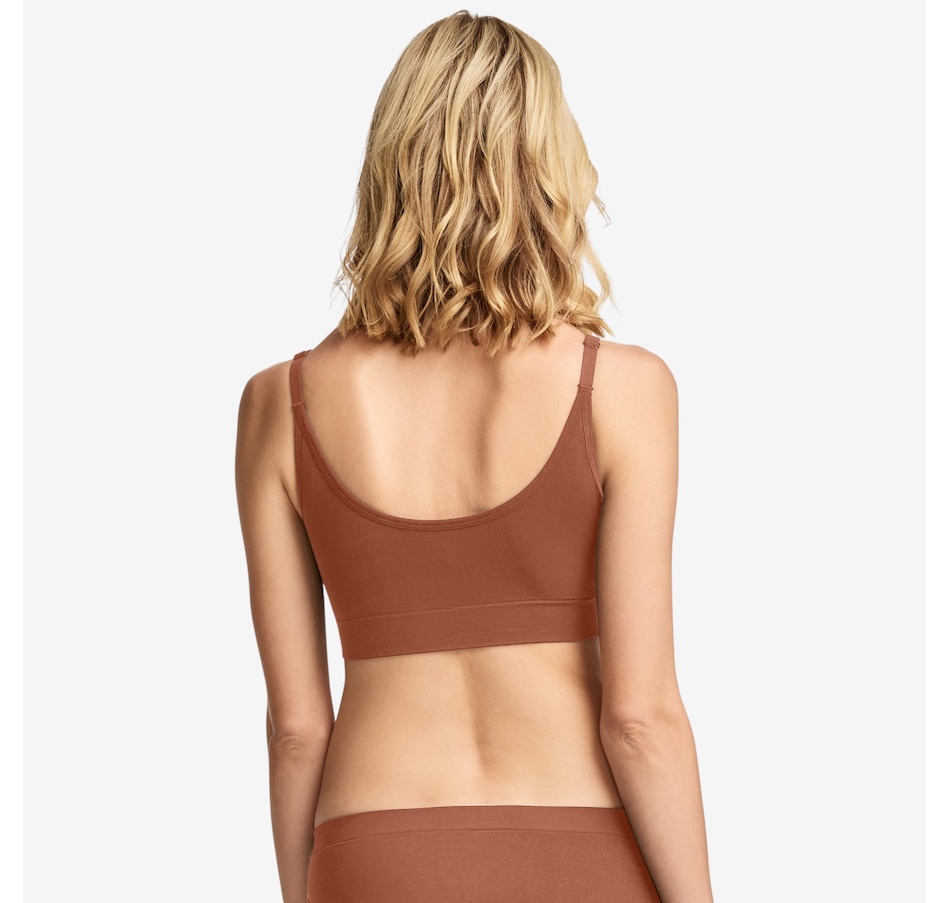 Experience next‑level comfort with this two‑pack of back smoothing cami strap bralettes from Jockey, an upgraded take on their #1 best‑selling design! Crafted with the same ultra‑soft stretch you love, this seamless bralette now features a plunging v‑neckline and adjustable cami straps for a flattering, customizable fit. High sides and a smoothing u‑back work together to create a sleek, polished silhouette, while molded cups provide gentle shaping and curve‑enhancing coverage without wires or bulk. The wireless, Seamfree® construction skips side seams for smooth, all‑day comfort, making it ideal for lounging, layering, or light everyday wear. Easy pullover styling and demi coverage complete the design, delivering light support and effortless confidence.