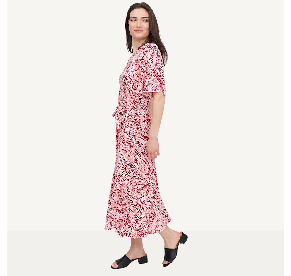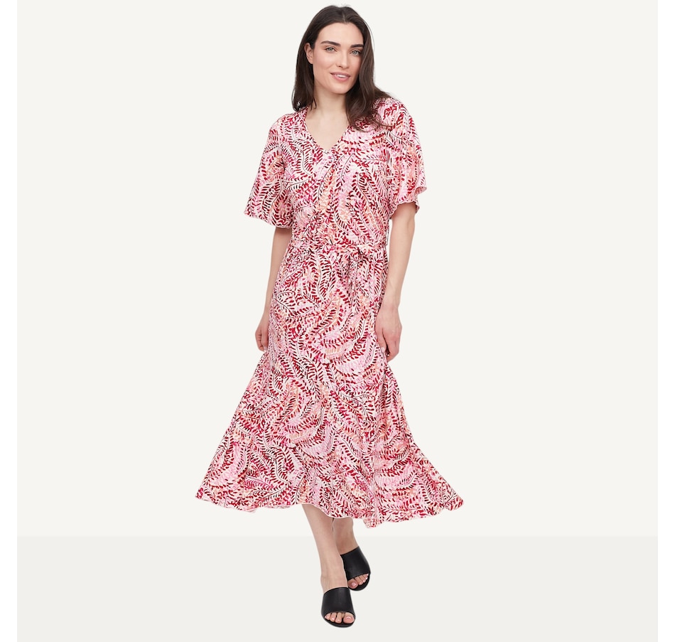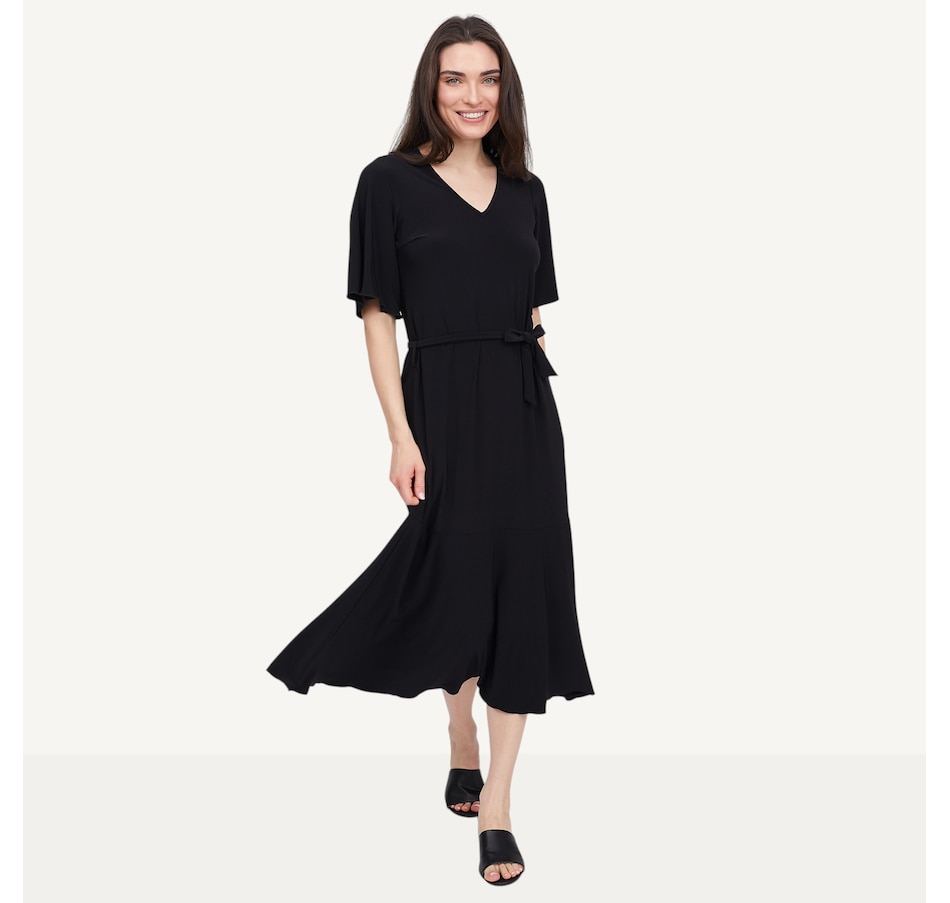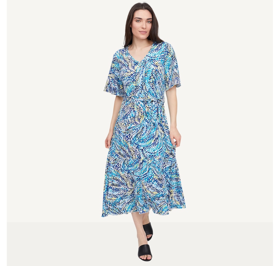 This printed V‑neck flared sleeve dress from Marallis delivers an effortlessly feminine look with soft flare sleeves and a gently flared skirt that falls to a flattering knee length. Designed with a matching self‑fabric belt to define the waist, it creates a polished yet easy silhouette. Unlined and finished with a serged hem, this V-neck style measures 33" from the centre back. It is exclusive to TSC and designed and produced in Canada.