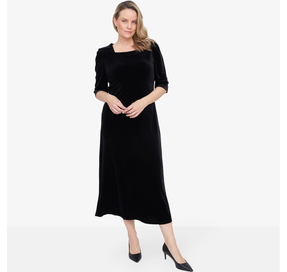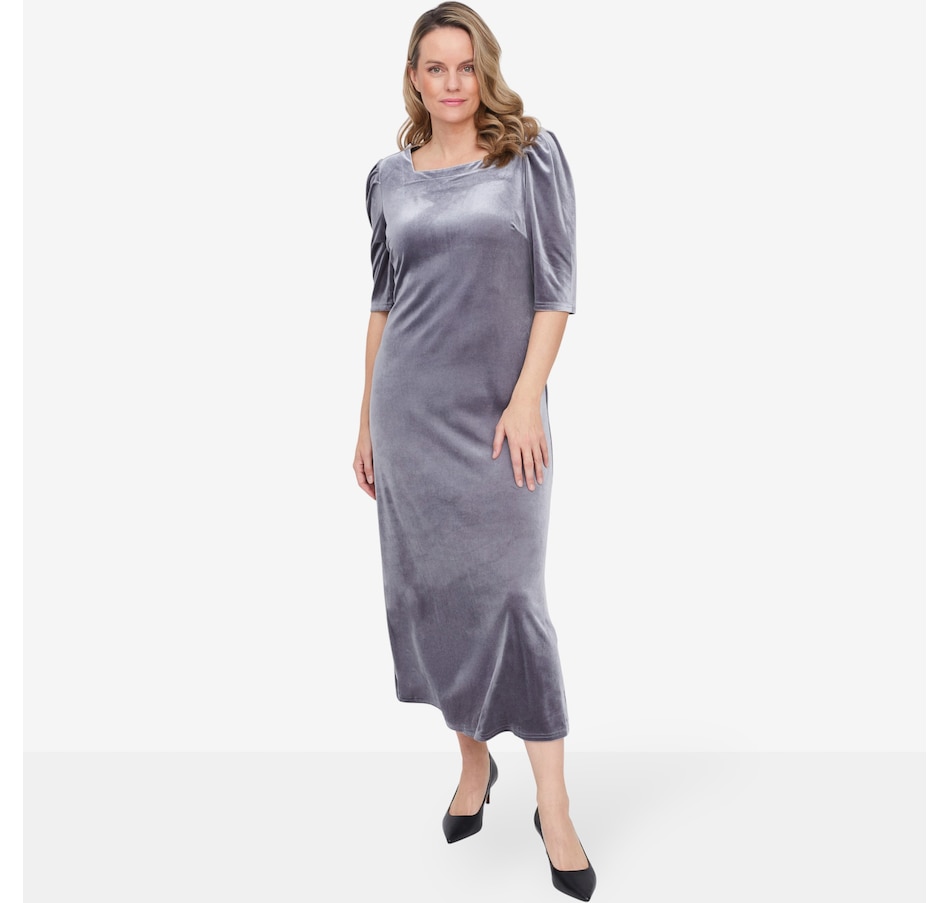 Puff Sleeve Ankle Length Velvet Dress