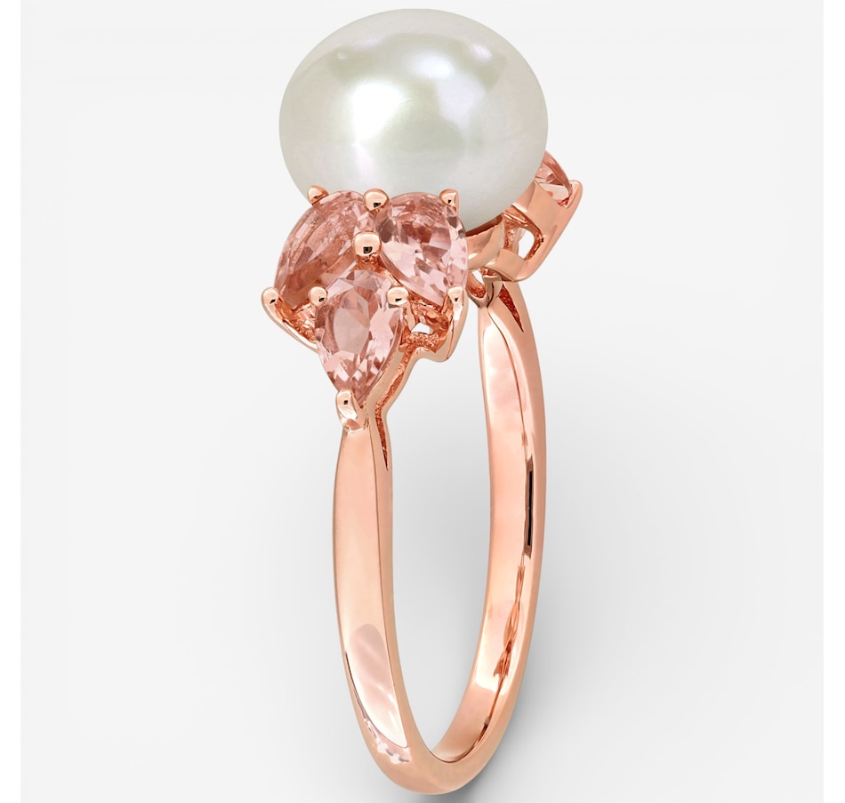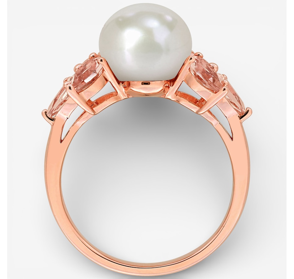 10K Rose Gold 9-9.5mm Freshwater Cultured Pearl And Morganite Cocktail Ring
