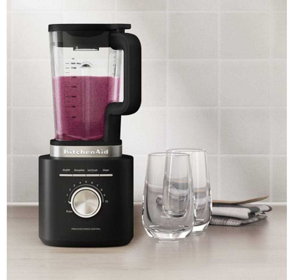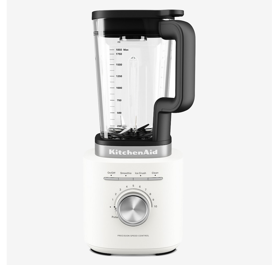 This power blender from KitchenAid comes with a 62-ounce glass jar, which is designed to help you create your blends just the way you like them, from fruit smoothies and protein shakes to creamy dips or simmering soups. Simply add ingredients to the jar and use the settings and the precision speed control knob to blend your recipes exactly as you like them.