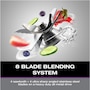 • Eight-blade system: Four sawtooth and four ultra-sharp angled stainless-steel blades