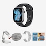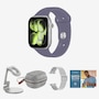 • Controls: digital crown with haptic feedback, side button, Double-Tap gesture, Siri with on-device processing