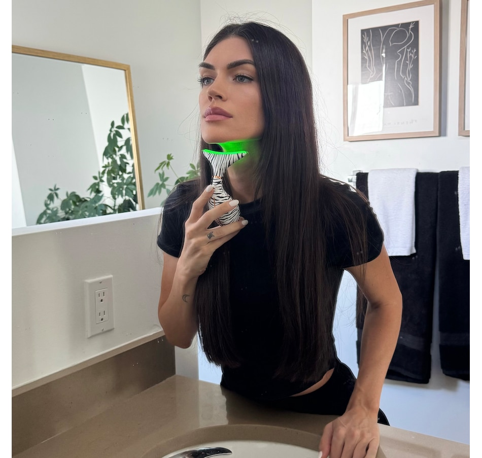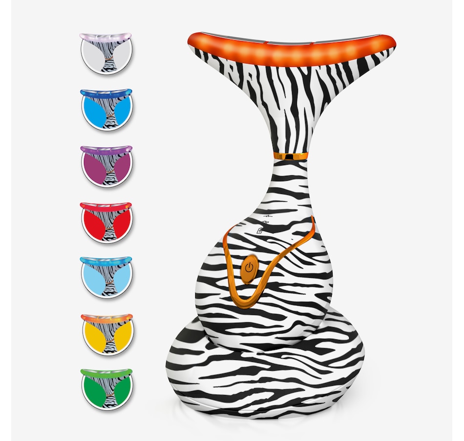 GLO24K 7 Colour LED Neck & Face Massager Deluxe utilizes 7 colour LED technology, high-speed vibration, and temperature-controlled light heating, along with other advanced features, to rejuvenate and revitalize the skin on the neck and face for a youthful, flawless appearance. This premium, luxury beauty tool is ergonomically designed, easy to use, rechargeable, travel-friendly, and suitable for all skin types. Use as needed, 5–10 minutes at a time.