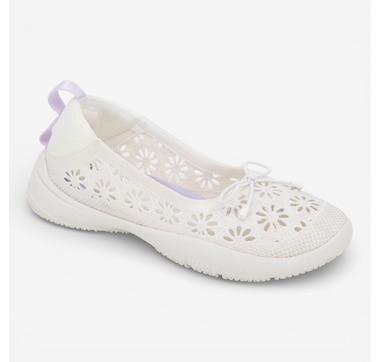 Step into effortless style and all‑day comfort with the Bianca Mary Jane from JBU by Jambu, a beautifully designed flat that proves fashion and foot health can go hand in hand. Crafted from soft vegan suede with elegant satin trim, its geometric perforations and breathable cutouts add both visual charm and airy comfort. The contoured insole cushions every step, while the flexible All‑Terra traction outsole delivers a reliable grip. APMA‑accepted for promoting healthier movement, Bianca also features an easy Velcro closure and comes in wide sizes, making it a supportive, versatile choice for every wardrobe.