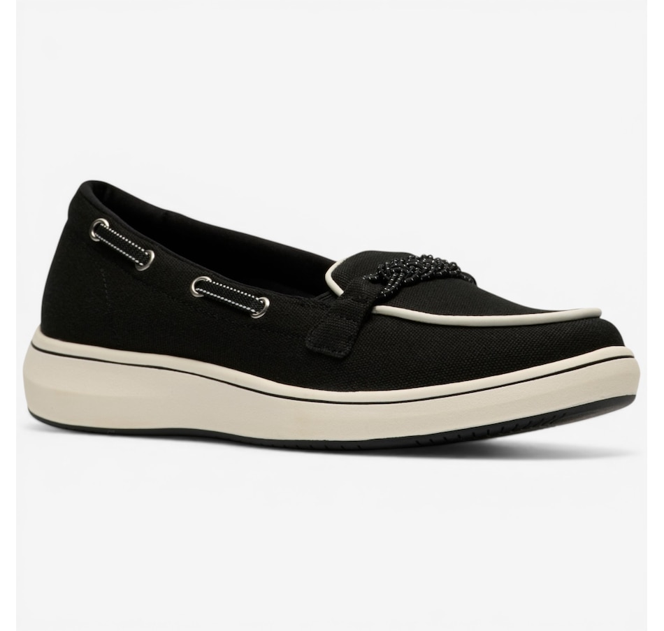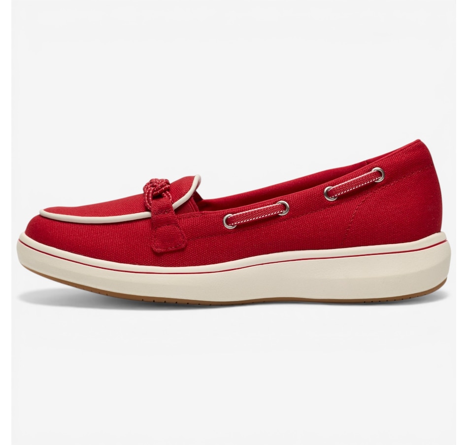 Step into laid‑back comfort with the Breeze Sky Bay slip‑on, a canvas boat shoe inspired by hot, sunny days by the shore. Designed for effortless all‑season wear, this easy slip‑on blends relaxed style with signature Cloudsteppers comfort, thanks to its super‑supportive Cushion Soft® footbed that absorbs shock and keeps you comfortable all day long. Elastic gore inserts make on‑and‑off a breeze, while the smooth textile lining and sock feel soft against your foot. Finished with a flexible, grippy TPR sole for added stability and traction, the Breeze Sky Bay is an exceptional partner for weekends, beach walks, and everything in between.
