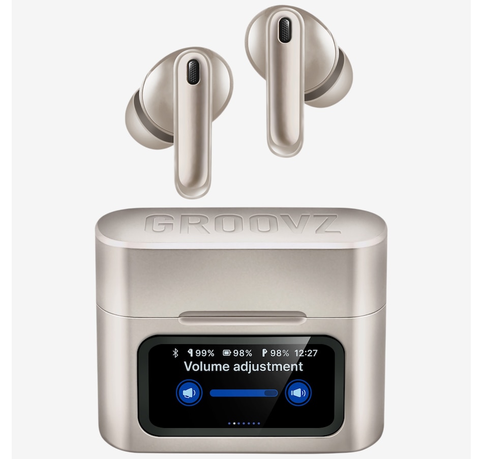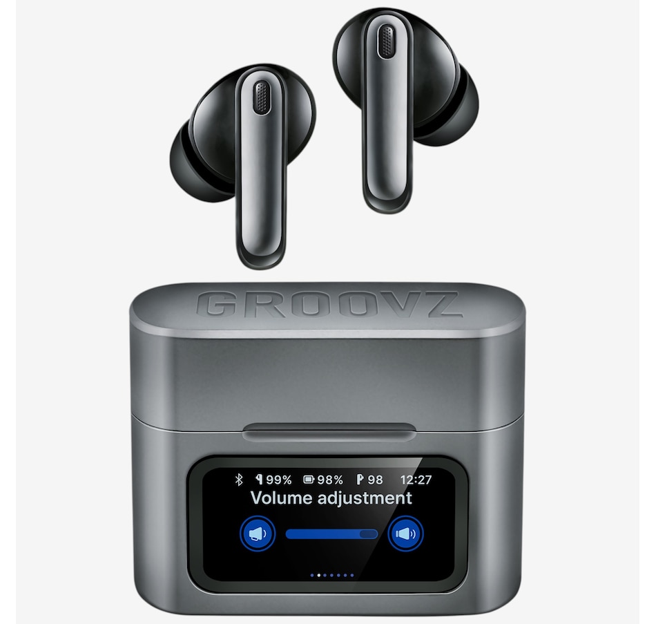 These earbuds from Groovz offer great sound and convenient touch controls, and they come with a touchscreen charging case that lets you swipe, end phone calls, scroll, tap, set the date, skip songs and change the wallpaper. It can even help find the earbuds if you lose them.