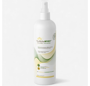 The AlcheMYST™ | ClimateSYNC™ Smart-B.A.S.E. Seasonal Acclimating HA?draSHIELD Leave-ON Primer is a leave-on, liquid-to-gel conditioning primer designed to hydrate, protect, detangle, and adapt to your real-time climate. It forms a breathable cushion-like barrier on hair or skin that responds to environmental stressors such as humidity, heat, dryness, or pollution. Preloaded with season-specific AccliMATE™ adaptogens, it syncs your routine to the weather without any mixing or guesswork.