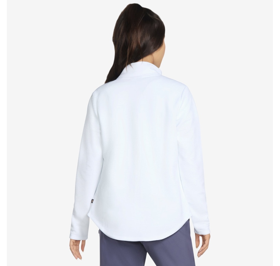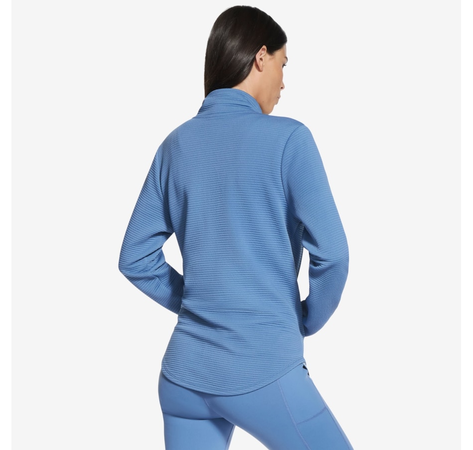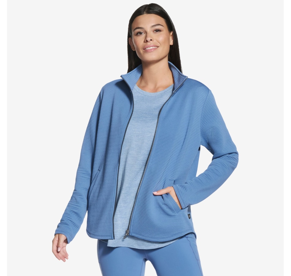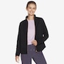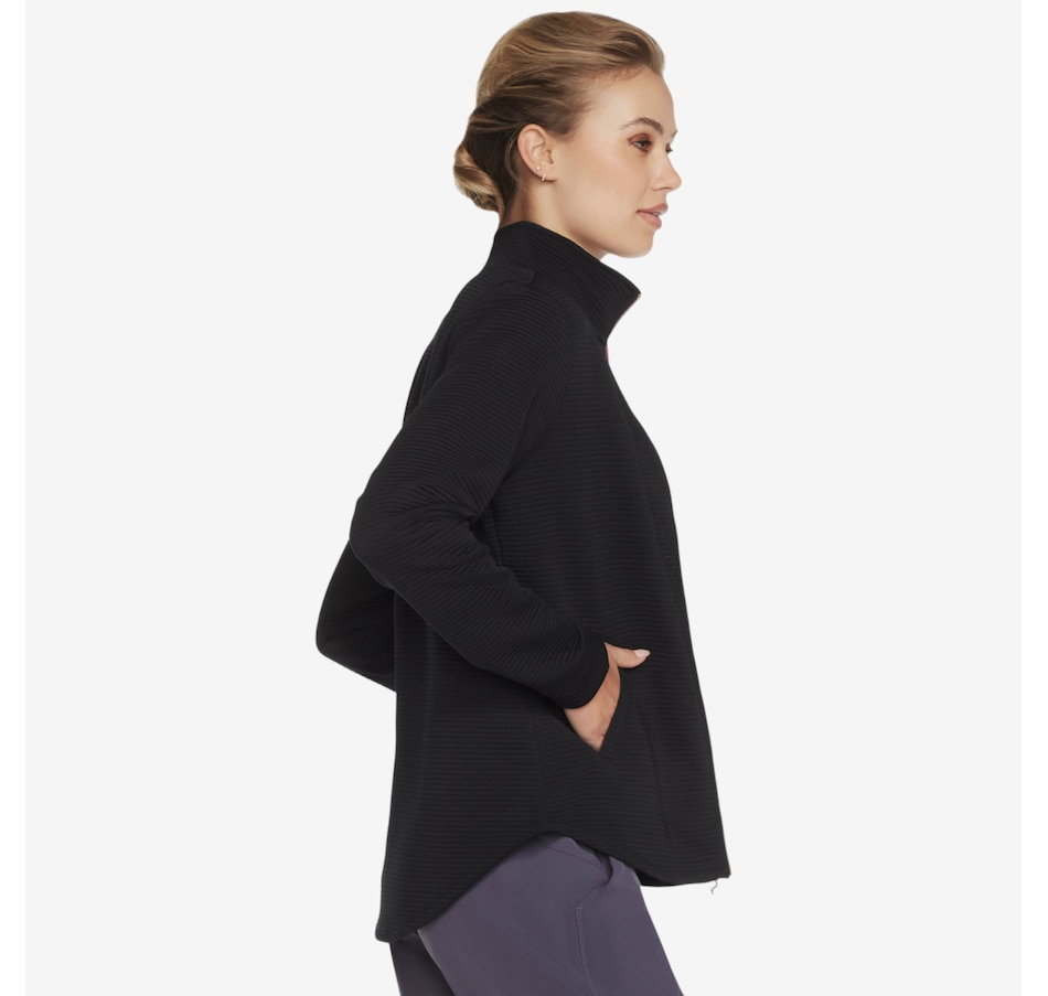 Add a subtle touch of shine to your everyday layers with the GoWalk Shine full‑zip mock neck jacket from Skechers, where casual comfort meets modern style. Designed in Skechers Soft Knit Ottoman® fabric, this ribbed jersey is crafted from recycled polyester that meets the Global Recycled Standard, delivering breathable comfort with a softly structured feel you’ll love. The mock neck and full‑zip front create a sleek, sporty silhouette, while the scooped hem adds flattering coverage and easy movement. Welt pockets keep the look clean and functional, and the signature diamond‑branded zipper pull adds a refined finishing touch.