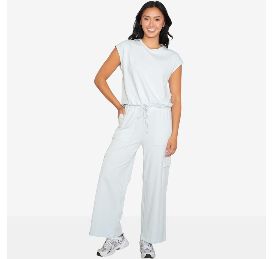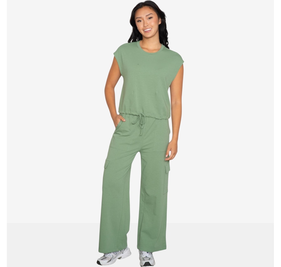 Comfort meets utility‑inspired style in this cap sleeve top and cargo pant set from Latte Love. Crafted from a soft cotton blend, it delivers a smooth, breathable feel you’ll want to live in. The sleeveless crew‑neck top offers clean, minimal styling that pairs perfectly with the modern straight‑leg cargo pants. Designed with a flattering high‑rise fit, elastic drawcord waistband, and functional front slash and cargo pockets, the pants bring both structure and laid‑back ease.