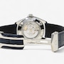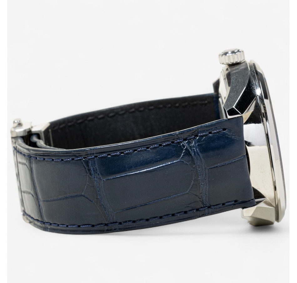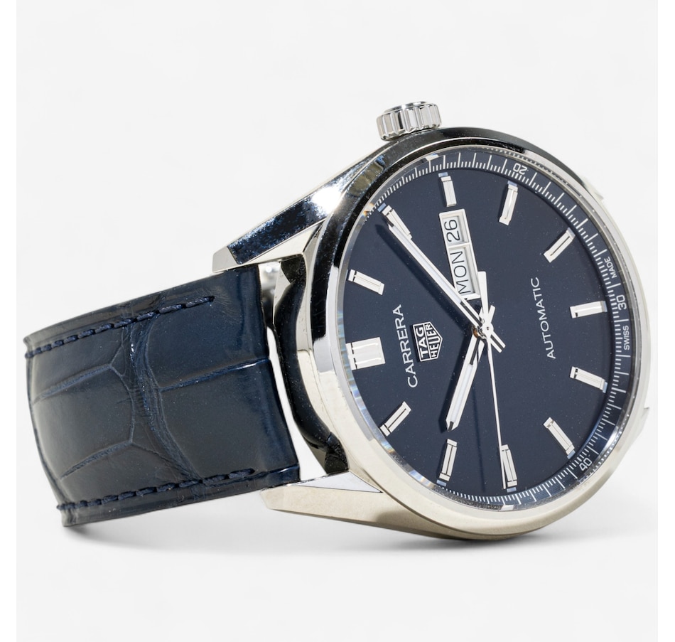 The striking royal blue leather strap adds a modern touch of colour and is secured with a folding deployment clasp for comfort and ease of wear. The blue sunray dial is accented with polished, applied hour markers and features a day/date window at 3 o'clock, combining practical function with sleek design. The case is marked #BRZ8770, denoting authenticity, and the model number #WBN2012 confirms its identity within the Carrera collection. The original purchase date was Sept 15, 2024 and is still under warranty for 1 year. Simply scan the barcode on the included warranty card and register the watch.